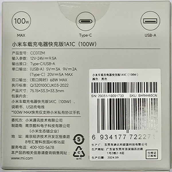شارژر فندکی شیائومی مدل CC07ZM 1A1C