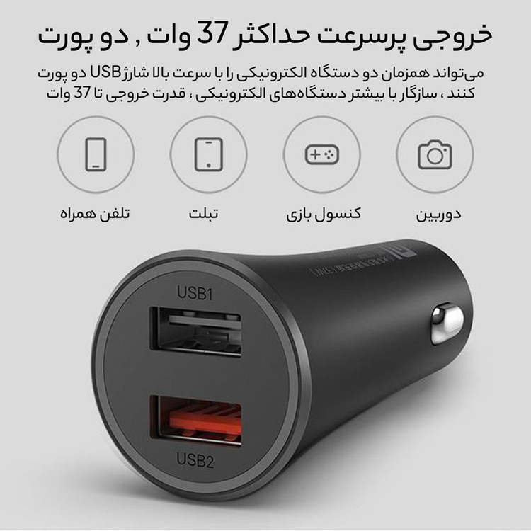 شارژر فندکی شیائومی مدل Mi 37w dual-port car charger