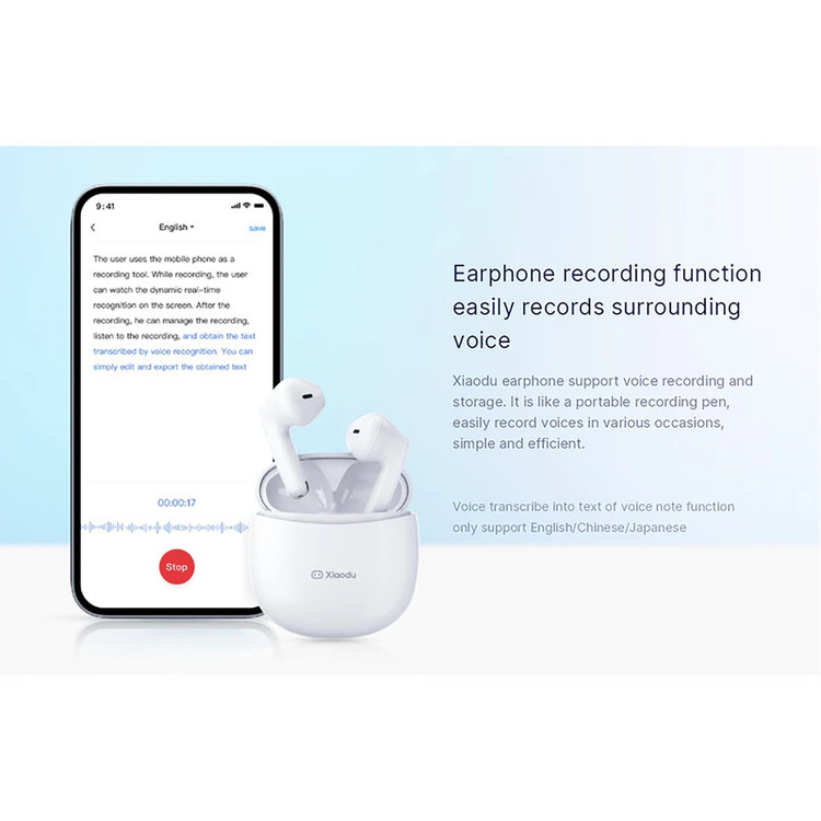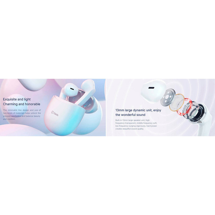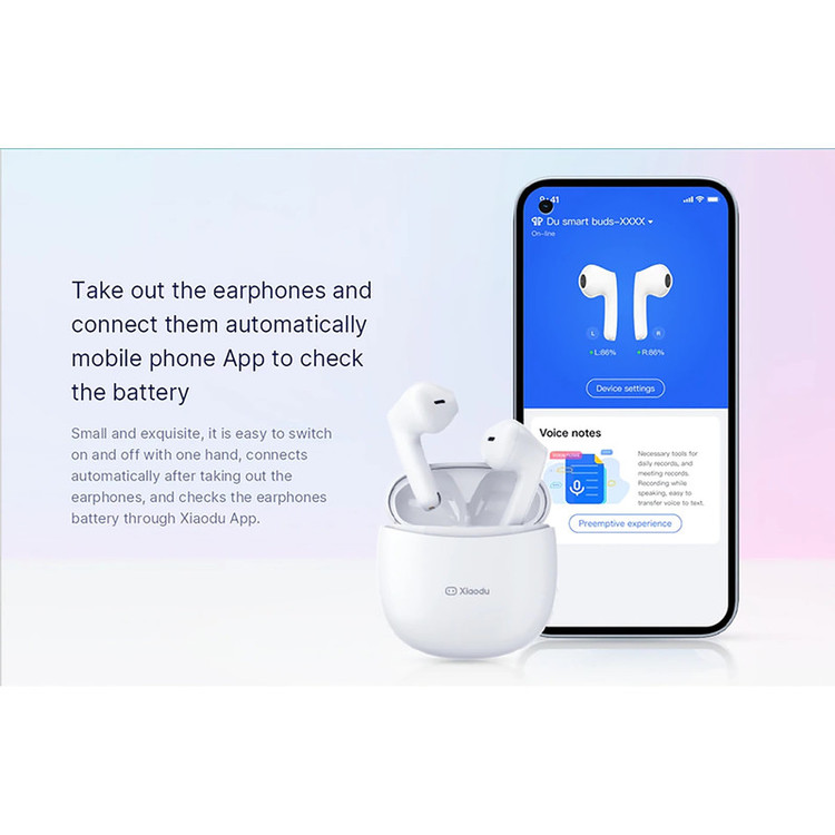 هندزفری بی سیم شیائودو سری DU Smart Buds مدل XD-SWA14-2101 دارای بدنه ای از جنس پلاستیک بوده که در برابر فشار و ضربه های احتمالی مقاوم است. ایرفون ها علاوه بر زیبابی از وزن نسبتا کمی برخوردار هستند و با طراحی ارگونومیک خود سبب جلوگیری از خستگی گوش کاربران در هنگام استفاده طولانی مدت خواهند شد. هندزفری بلوتوث مذکور از استاندارد IPX4 به معنی مقاومت در برابر پاشش آب برخوردار است. این گواهی انجام ورزش های همراه با تعریق یا استفاده از هندزفری در شرایط آب و هوایی بارانی و مه آلود را برای کاربران فراهم می کند. از دیگر قابلیت های هندزفری می توان به اپلیکیشن اختصاصی جهت مشاهده ظرفیت باتری ایرفون ها اشاره کرد که از طریق اسکن کردن کد QR روی پک می توانید آن را نصب کنید. هندزفری بی سیم شیائودو از کدک های صوتی AAC و SBC پشتیبانی می کند که به عنوان پیشرفته ترین رمزگذاری ها شناخته می شوند و کیفیت فایل صوتی را به صورت قابل توجهی افزایش می دهد. اتصال بی سیم Xiaodu به گوشی موبایل، تبلت و … توسط بلوتوث نسخه 5٫0 بلوتوث برقرار خواهد شد که از پروفایل های A2DP ،AVRCP و HFP پشتیبانی می کند. بلوتوث دستگاه قادر است اتصالی پایدار تا شعاع تقریبی 10 متری را برای کاربران فراهم کند. هندزفری مجهز به یک کیس شارژ با ظرفیتی معادل 400 میلی آمپر ساعت می باشد که جهت شارژ شدن ایرفون ها مورد استفاده قرار می گیرد. در صورت اتمام شارژ کیس همراه می توانید آن را از طریق پورت تایپ سی به صورت کامل شارژ کنید. هر یک از ایرفون ها نیز دارای باتری با ظرفیت 35 میلی آمپر ساعت هستند و تا حدود 4 ساعت شارژدهی دارندو همچنین عمر باتری هندزفری در صورت همراهی کیس شارژ تا 20 ساعت قابل افزایش می باشد. درایو 13 میلی متری هندزفری صداهای زیر و بم را به خوبی تفکیک کرده و به انتقال صدا با کیفیت بالا می پردازد. میکروفون داخلی با قابلیت کاهش نویز (ENC) نیز به ایجاد مکالمه ای شفاف و واضح منجر خواهد. بر روی بدنه کیس شارژ و گوشی های هندزفری نشانگر هایی از نوع LED جهت اطلاع از وضعیت شارژ تعبیه شده است. پایداری و سرعت اتصال بی سیم گوشی ها به لطف وجود چیپست هوشمند Actions ATS3015 افزایش می یابد و به کاهش هر چه بیشتر تاخیر در بازی های آنلاین و تماشای فیلم و سریال زنده کمک خواهد کرد.