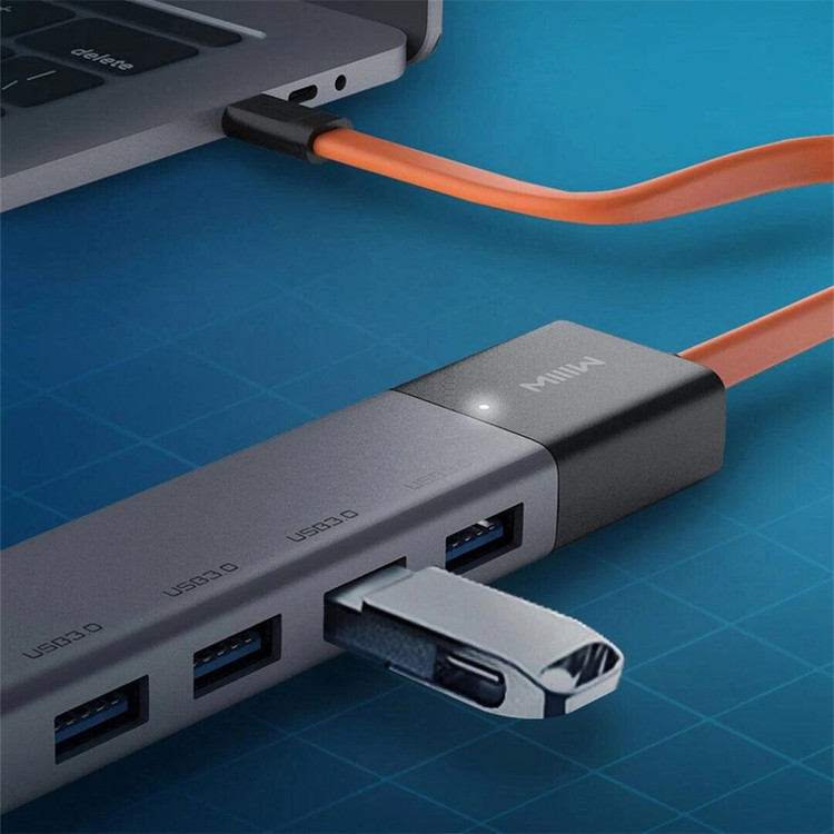 شرکت MIIIW از شرکتهای زیر مجموعه برند شیائومی می باشد که در زمینه لوازم جانبی لپ تاپ و کامپیوتر فعالیت دارد و با کیفیت بالای محصولات خود توانسته است جایگاه ویژه ای در بازار بدست بیاورد. در لپتاپهای جدید با باریکتر شدن دستگاهها تعداد پورتهای اصلی نیز در حال کم شدن هستند. از این رو نیاز به ابزاری مانند هاب یا اکستنشن داریم که بتواند پورتهای بیشتری را برای ما فراهم کند. هاب 5 پورت Xiaomi MIIIW 5 In 1 USB-C Hub محصولی از کمپانی MIIIW است که در مجموع 5 پورت را در اختیار شما میگذارد تا بتوانید دستگاههای بیشتری را به سیستمتان متصل کنید و همچنین قابلیت اتصال دستگاهتان به تلوزیون را فراهم میکند. برای افزایش مقاومت Xiaomi MIIIW 5 In 1 در برابر ضربه اطراف بدنه آن به صورت فلزی ساخته شده است. ظاهر آن کوچک و قابل حمل است و ابعادی برابر با 14×26.8×128 میلی متر دارد که یک کابل تایپ سی 12 سانتی به آن متصل است. همانطور که از اسمش پیداست این تبدیل مجموعا دارای 5 پورت و 1 کانکتور است. پورت ها به این قرارند که در سمت طولی بدنه 4 پورت USB3 که دارای سرعت انتقال داده 450مگابیت بر ثانیه و در سمت عرضی آن یک پورت HDMI داریم، شما می توانید با استفاده از این هاب، خیلی از اکسسوریهای دیجیتال مانند کیبورد و موس خود را نیز به آن متصل کرده و به این شکل از آنها راحتتر استفاده کنید. با بهره گیری از پورت HDMI می توانید آنچه که در لپ تاپ خود دارید و می خواهید را به تلویزیون منتقل کرده و تصاویر و ویدئوهای مورد نظر خود را با نمایشگر بزرگتری مشاهده نمایید. این پورت از کیفیت فوق العاده 4K 30Hz پشتیبانی کرده و لذا اگر تلویزیون خانگی شما نیز این قابلیتها را دارد به راحتی میتوانید از این هاب برای انتقال صدا و تصویر استفاده کنید. این پورت با لپتابهای مک بوک اپل و سرفیس مایکروسافت سازگاری کامل دارد و برای سری جدید پردازنده های M1 اپل بهینه شده است. کانکتور این هاب از نوع تایپ سی به صورت متصل است.