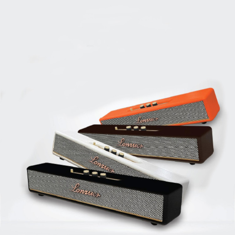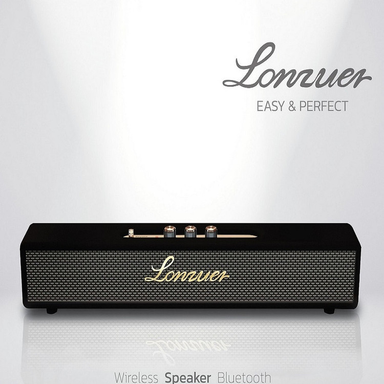 شرکت LONZUER اسپیکر ساندبار Beyond را روانه بازار اسپیکرها و ساندبارها کرده که از جنس روکش چرمی بسیار زیبا و اجزای فلزی طلایی جذاب تشکیل شده و یک ساندبار خانگی بلوتوثی بیسیم قابل حمل و قابل شارژ است. این ساندبار دارای طراحی منحصر به فرد است. قابلیت تنظیم صدا، کنترل بیس، صدای زیر را داراست. با ظاهر کوچک دارای حجم صدای بسیار زیاد و قدرت صوتی بالایی است و سطح صدای بالا و حجیم نسبت به سایز این محصول برای کسانی که اولینبار صدای این اسپیکر را گوش میکنند شگفت انگیز است این ساندبار در اندازه کوچک و تا حدی دراز ساخته شده تا به راحتی بتوانید با لوازم دیگر خانه ست کنید و از پخش موسیقی در بالاترین کیفیت لذت ببرید. این محصول از 2 ووفر 15وات و دو توئیتر 10 وات استفاده میکند که دارای بالاترین کیفیت ساخت هستند. این اسپیکر دارای صدای باکیفیتی است و به شما بیس عمیق و نرمی را ارائه میدهد. همچنین شما میتوانید با توئیتر قدرتمند موجود در این ساندبار، صداهای ریز را در واضحترین و بهترین کیفیت ممکن بشنوید. در قسمت بالای این دستگاه، کنترلرهایی تعبیه شده است که به شما امکان کنترل دستگاه را می دهد و تغییر در نوع اتصال بلوتوث یا AUX را به شما میدهند. بورد بلوتوث موجود در این دستگاه به شما امکان پخش موسیقی به صورت مستقیم از تلفن یا هر دستگاه هوشمندی را میدهد. این اسپیکر دارای بلوتوث نسخه 5.0 است که امکان اتصال بیسیم را برای شما با بالاترین کیفیت فراهم میکند. شما میتوانید با وارد کردن کابل AUX در ورودی 3.5 میلیمتری دستگاه، تلفن همراه هوشمند خود یا هر پخش کننده دیگری را به صورت باسیم به اسپیکر متصل کنید و به پخش موسیقی خود ادامه دهید.