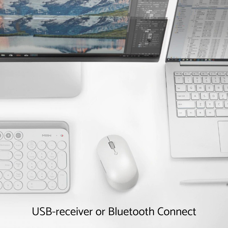 سال هاست که موس یکی از اصلی ترین لوازم ارتباط با کامپیوترهاست. یکی از مشکلاتی که شاید تابحال با آن برخورد کرده باشید صدای کلیک موس هاست. چاره کار استفاده از یک موس سایلنت است. مثل همیشه شیائومی یکی از بهترین چاره ها را پیش روی شما گذاشته و موس وایرلس سایلنت شیائومی WXSMSBMW02 را تولید کرده است. این موس علاوه بر قابلیت سایلنت بودن، دارای اتصال بلوتوث و اتصال با دانگل وایرلس می باشد. موس شیائومی مدل Silent Edition از لحاظ طراحی بسیار ارگونومیک می باشد. ابعاد این موس 112.7 × 62.7 × 36.8 میلی متر بوده و ابعاد بسیار مناسبی دارد. وزن موس سایلنت شیائومی نیز تنها 93 گرم می باشد. این ابعاد و وزن در کنار یکدیگر باعث شده اند تا یک موس بدون نقص برای کارهای روزمره و طولانی داشته باشید. در قسمت رویی موس شیائومی، دو کلید کلیک چپ و راست و در میان آن ها مانند باقی موس ها، کلید اسکرول را مشاهده می کنید. کلید اسکرول نیز خود دارای یک کلیک می باشد. کمی پایینتر در همان نزدیکی یک دکمه دایره ای شکل تعبیه شده که قابلیت تعیین دقت موس را دارد، که در ادامه توضیحات بیشتری در مورد آن خواهیم داد. در قسمت سمت چپ موس دو کلید دیگر نیز تعبیه شده است که کلیدهای Back و Forward هستند. در قسمت زیرین نیز کلید خاموش و روشن و در زیر یک درب دایره ای، جایگاه دانگل موس و جایگاه باتری گنجانده شده است. کلیدهای موس شیائومی Xiaomi Mi Silent Edition Dual Mode Wireless Mouse WXSMSBMW02 بصورت سایلنت طراحی شده و بسیار نرم می باشند. با استفاده از این موس شما می توانید در هر زمان و هرجایی از موس استفاده کنید بدون اینکه نگران صدای آزاردهنده کلیک موس باشید. علاوه بر این کلید چرخنده اسکرول نیز از این قابلیت بهره مند است و با استفاده از جنس سیلیکونی نرم روی آن، علاوه بر بی صدا بودن، کارایی بسیار راحت و نرمی دارد. دقت موس یا همان DPi، درواقع به شما نشان می دهد که دقت موس شما در هر اینچ چند نقطه است. موس Silent Edition شیائومی دارای دقت 1300 Dpi می باشد که می توانید با کلیدی که روی موس مخصوص این کار تعبیه شده، آن را در چند حالت مختلف از 800 تا 1300 Dpi تنظیم کنید.