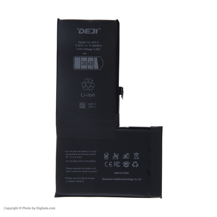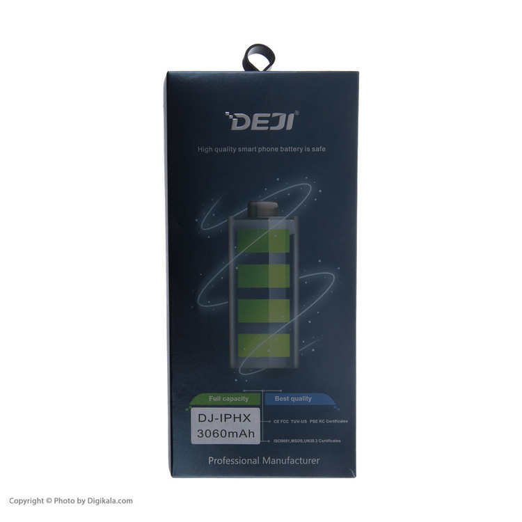 باتریها منبع انرژی برای گوشیهای موبایل هستند. ازآنجاییکه گوشیهای مختلف ابعاد و اندازههای متفاوتی دارند، طبیعتاً اندازه باتری و محلی که برای قرارگیری باتری آنها در نظر گرفته میشود هم متفاوت است؛ بنابراین بسته به گوشی خود باید باتری مناسبی را تهیه کنید. البته قبل از استفاده باید به ولتاژ و شدتجریان آنها هم توجه کرد تا آسیبی به گوشی نرسانند. باتری موبایل « DJ-IPHX » محصولی از برند «دجی» (Deji) است که برای گوشی موبایل اپل iPhone X طراحی و تولید شده است. این باتری لیتیوم یونی ظرفیتی معادل 3060 میلیآمپرساعت دارد. ولتاژ در این مدل از باتریهای دجی برابر با 3.8 ولت است. باتری DJ-IPHX دارای استاندارد CE است که نشان میدهد این محصول مطابق با الزامات اساسی قوانین مربوط به سلامت، ایمنی و حفاظت از محیطزیست اروپا تولید شده است. اگر از عملکرد باتری گوشی موبایلتان رضایت ندارید، یا براثر استفاده نادرست، باتری کارایی و کیفیت اولیه خود را از دست داده است، زمان آن رسیده است که آن را با یک باتری مناسب تعویض کنید.