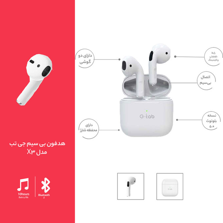 دیدن محصولات مرتبطبرای افرادی که علاقه دارند موزیک را به حالت بلوتوث و با کیفیت بالا بشنوند جدیدترین «هدفون بی سیم جیتب» (G-tab X3) با طراحی زیبا، سبک و راحت دردسترس است. این هدفون گوش را در طولانی مدت خسته نمیکند و در حالت مکالمه و پخش موزیک، تا 3 ساعت شارژ نگهداری میکند. «هدفون بی سیم جی تب» (G-tab X3) دارای یک باکس سفید رنگ است که به عنوان مخزن شارژ آن نیز محسوب میشود. محدوده عملکرد این هدفون تا 10 متر و نسخه بلوتوث آن 5.0 است. . این محصول کیفیت و حجم صدای خروجی مناسبی داشته و میتواند لذت گوش دادن به موسیقی را برای شما به ارمغان آورد.