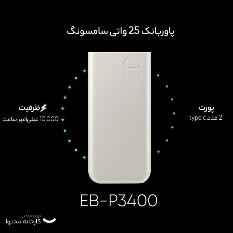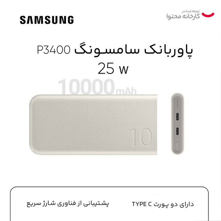 پاوربانک 25 وات سامسونگ مدل EB-P3400 ظرفیت 10000 میلی آمپر ساعت